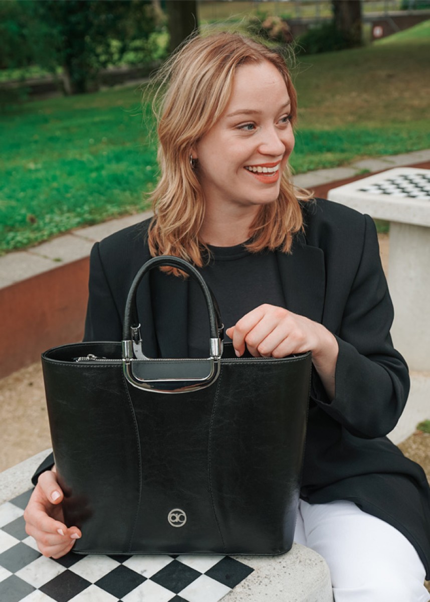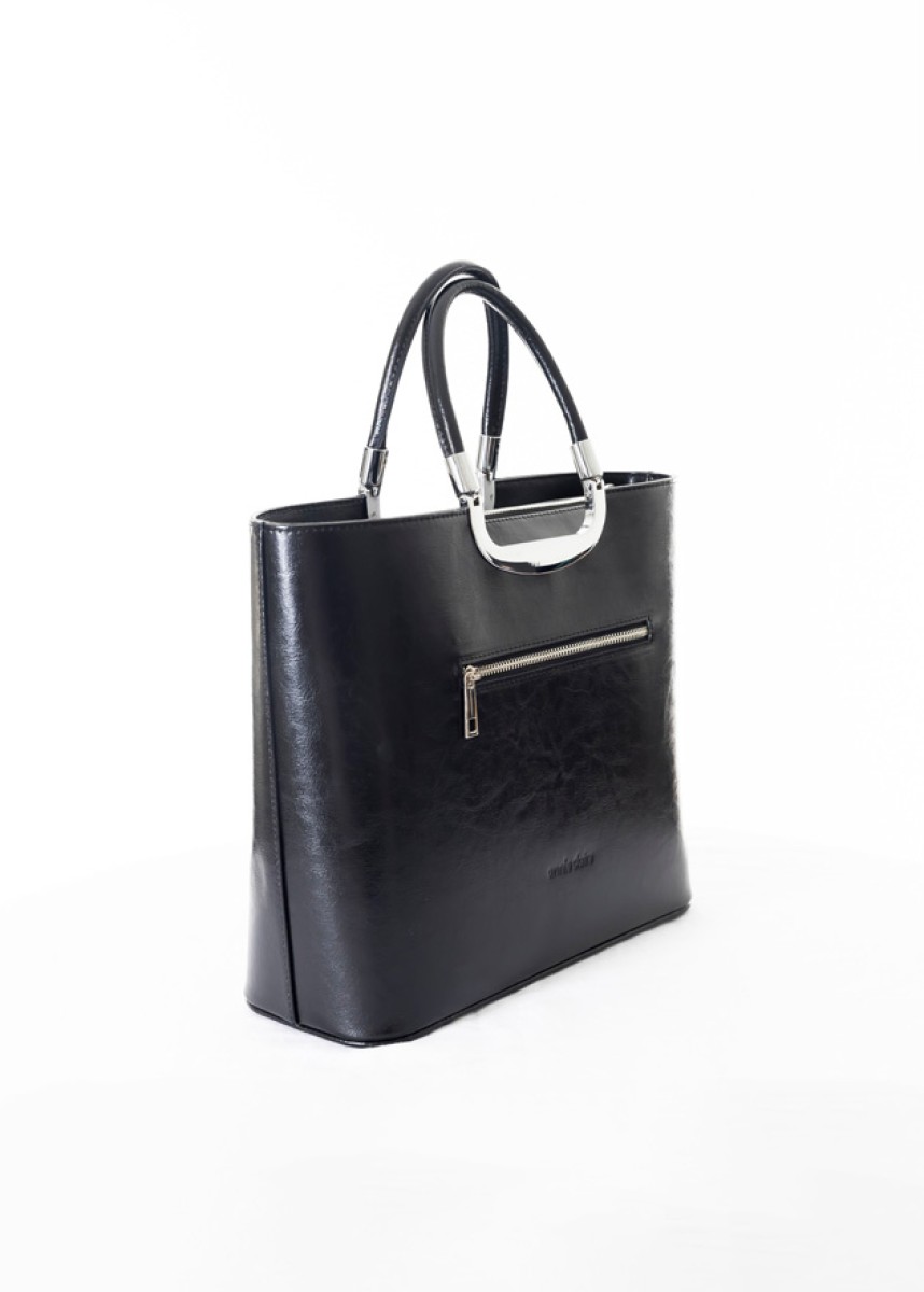 Die Fascino strahlt mit ihrem luxuriösen schwarzen Look und der silbernen Ausstattung Eleganz aus, die perfekt mit Silberschmuck harmoniert. Die Tasche ist mit Reißverschlüssen sowohl am Außenfach als auch am Hauptfach ausgestattet, so dass Sie Ihre Wertsachen sicher aufbewahren können.