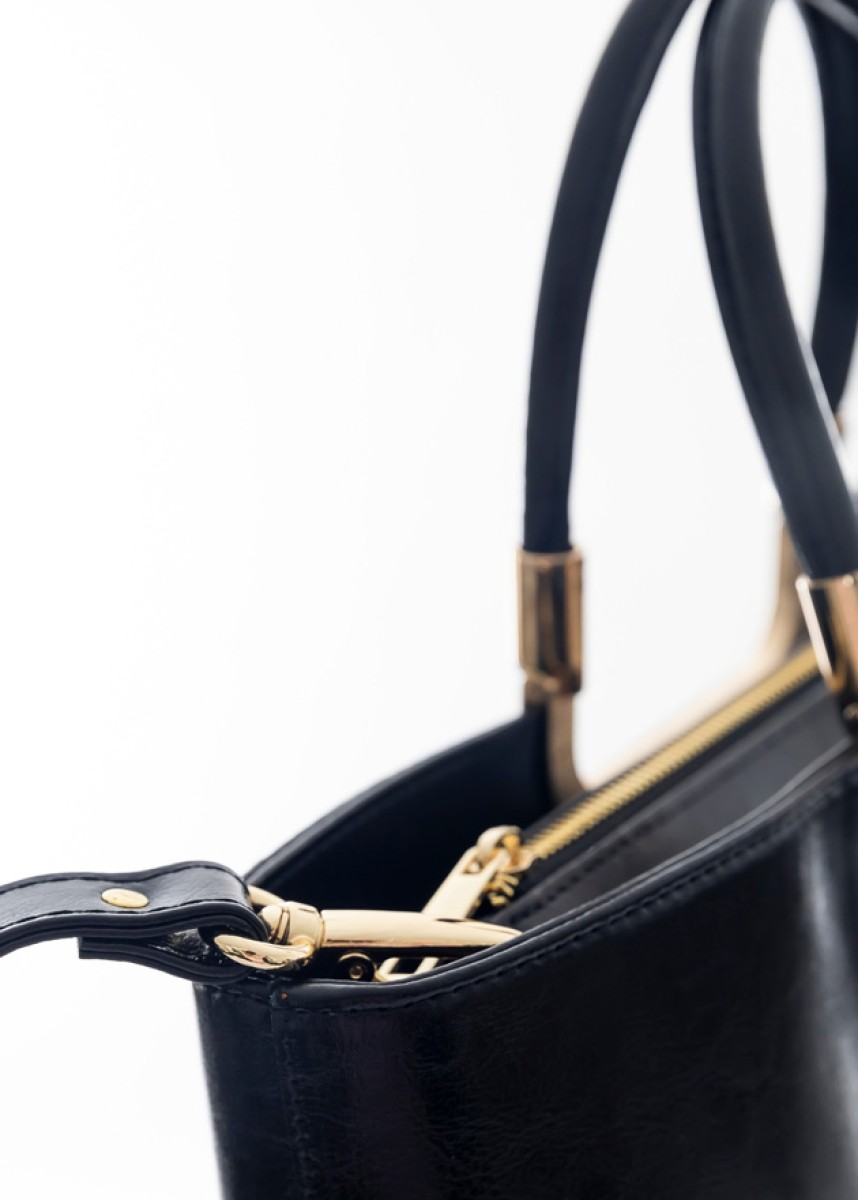 Die Fascino strahlt mit ihrem luxuriösen schwarzen Look und der goldfarbenen Ausstattung Eleganz aus, die sich perfekt mit Goldschmuck kombinieren lässt. Die Tasche wurde im Hinblick auf Ihre Sicherheit entworfen und verfügt über Reißverschlüsse sowohl am Außenfach als auch am Hauptfach, so dass Sie alle Ihre Wertsachen sicher aufbewahren können.