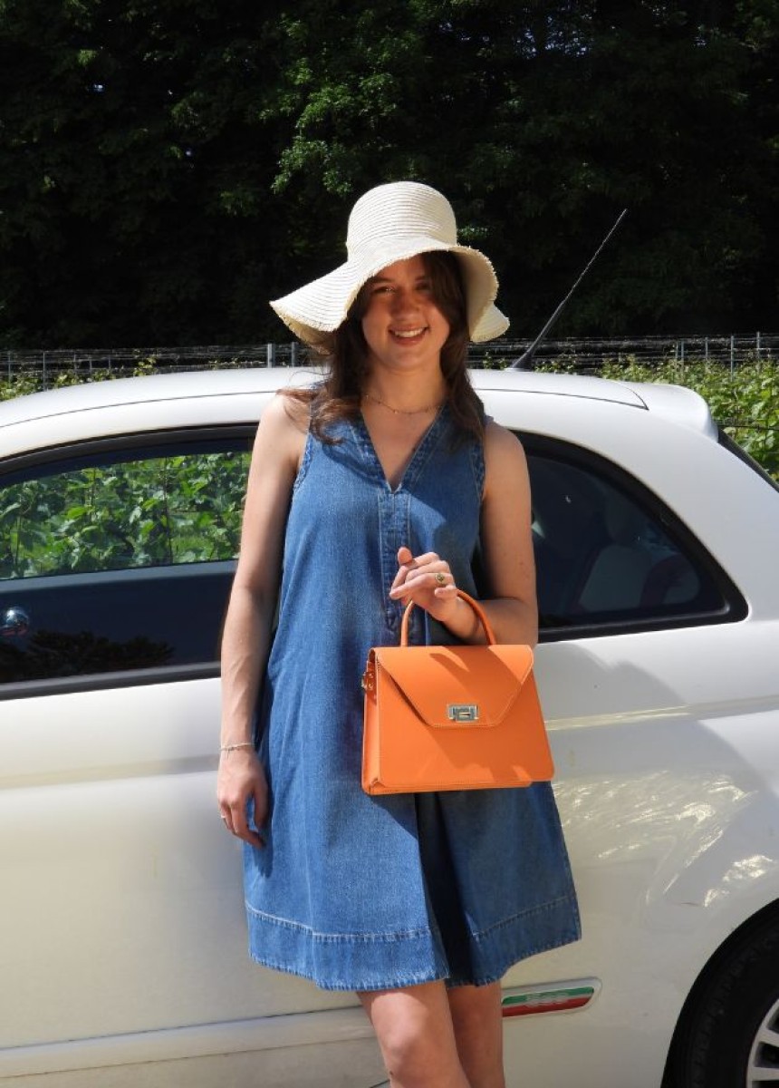 Ho la borsa piccola arancione e la porto sempre con me quando esco. È un piacere usare una borsa così bella. Una splendida azienda guidata da due donne appassionate!
