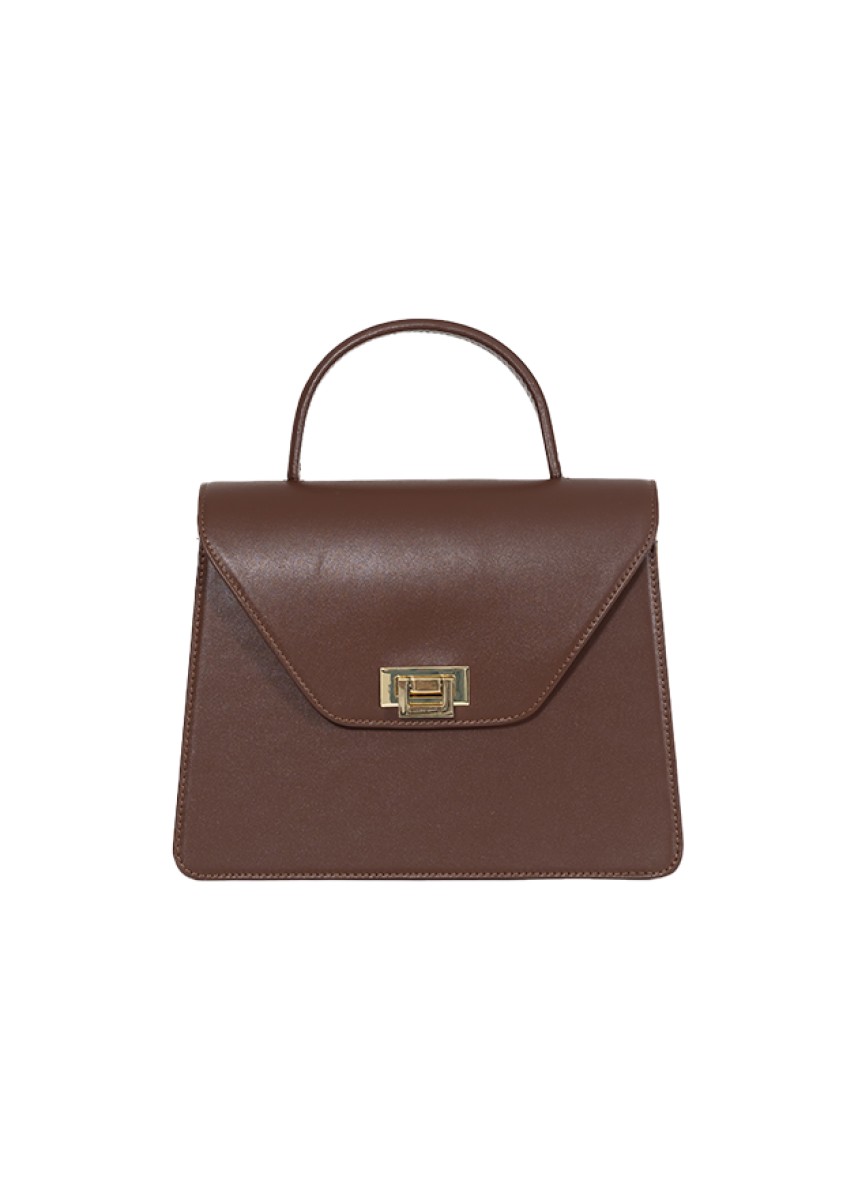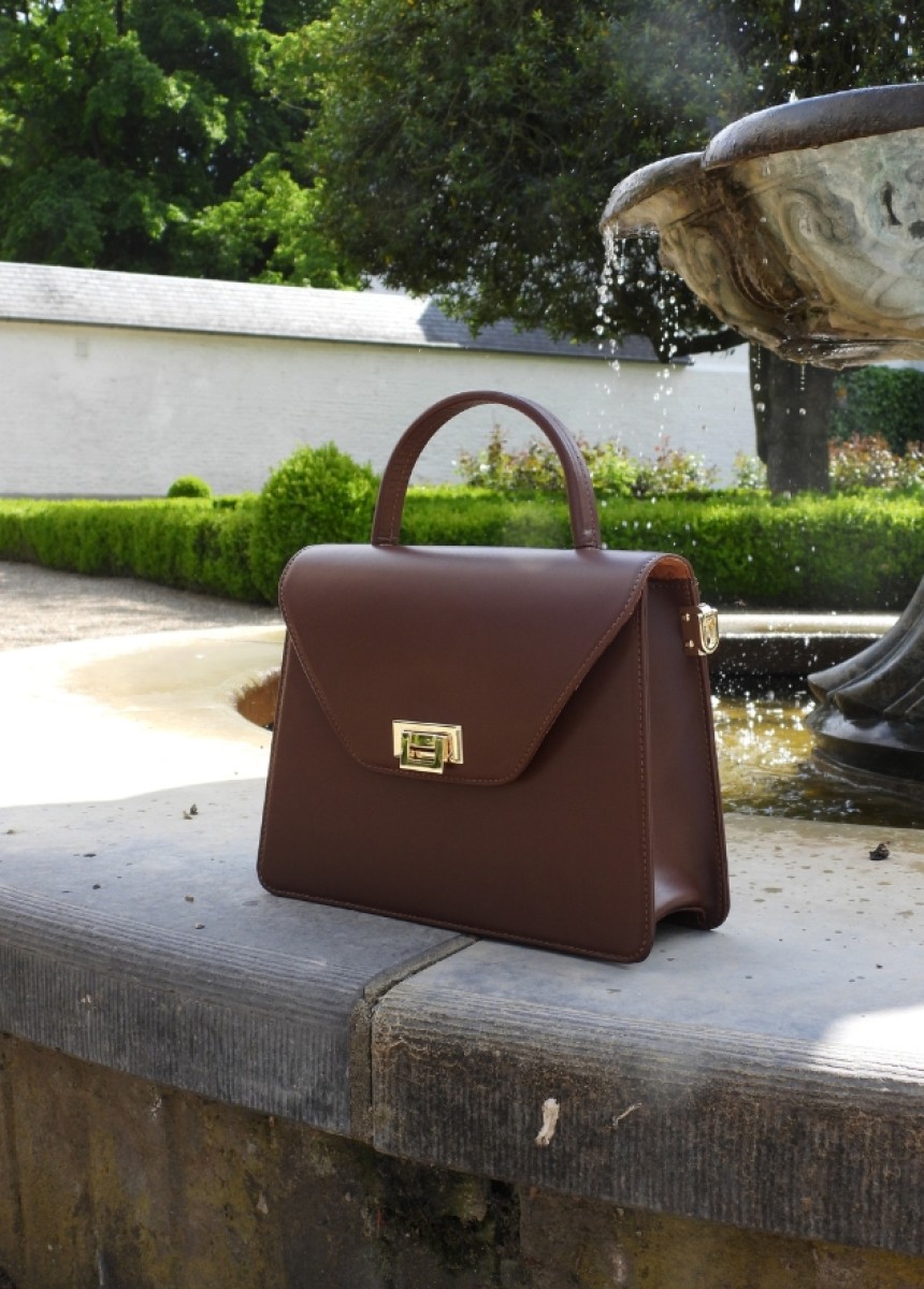 Serenità in cioccolato is een rijke, diepbruine handtas van soepel, gecertificeerd Toscaans leer, met de hand vervaardigd in Slowakije volgens Europees vakmanschap. Het verfijnde minimalistische design is niet alleen tijdloos, maar ook verrassend ruim — perfect voor alles wat je dagelijks bij je draagt, van werk tot diner.